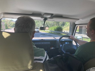 So …. we pile in – 8 of us in the Landy heading down ….