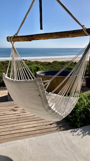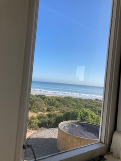 Leeto is situated in the Strandloper Hotel. From the car park we followed a board walk through the coastal bossies and on entering the doors we found ourselves on the beach. Leeto looks onto a small stream following in the ocean and past this is the open wide beach of Paternoster. In the distance is a giant rock in the ocean. It looks very much like and elephant partial submerged and starting the crossing to Argentina.