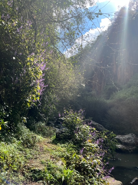 As the sun beat down we head up and down hill;