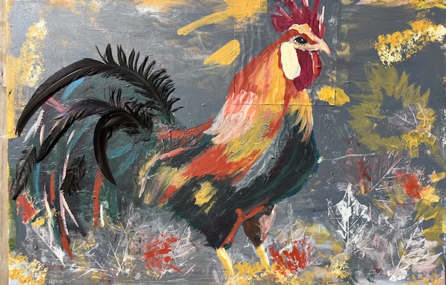 Sigh. ‘ow can I explain ze feeling of being so magnificent? It is a burden, you see, to be so ‘andsome. My name is Maurice, and I am a rooster of great importance. I am not like ze other chickens, no, no. I do not peck at ze ground like a common peasant. I do not get my beautiful feathers dirty. I prefer to promenade on ze soft, green lawn or ze perfectly crushed autumn leaves. My tail, you see it? It is a work of art, a masterpiece of emerald, sapphire, and ruby. I take my time, I strut slowly, giving all ze ‘ens a chance to admire my beauty. Oui, it is a tough job, but someone ‘as to do it. It is my duty to bring a little bit of French charm to zis farm. Bonjour, ladies. Don’t crowd me now.