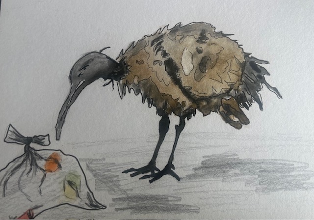 Enter: the other Sacred Ibis. Frazzled. Grubby. A little desperate. Streetwise. No stately monarch here — this one skulks down the street, scanning bin bags like the OG of feathered dumpster detectives. The transparent bags can be quickly scanned but the opaque bags need to be probed and prodded, maybe their long beaks will reach a treasure and sink into something delicious. Feathers dulled, dignity temporarily misplaced, it’s all about survival now.